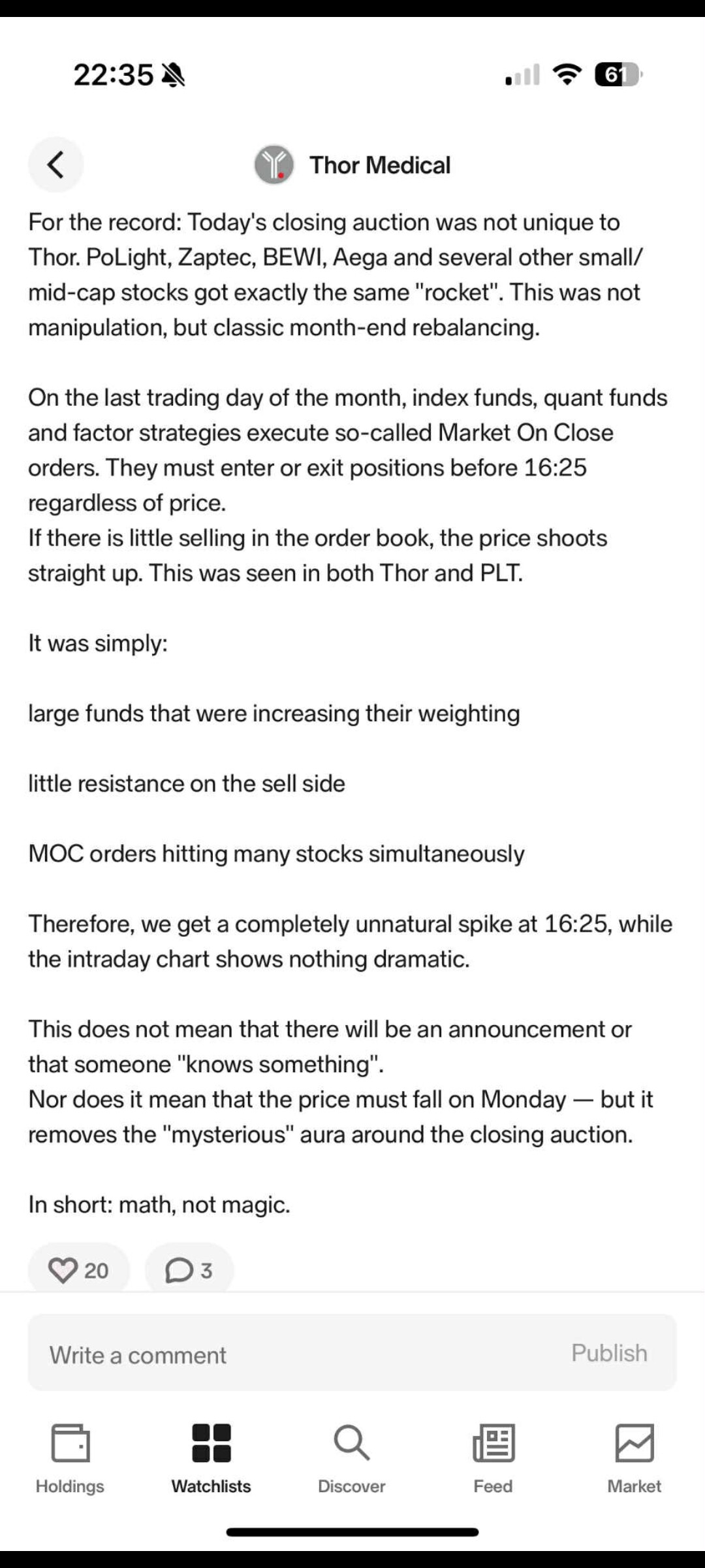 Thor Medical, ved Jasper, hadde en god presentasjon på DnB Healthcare konferansen i går. Det var også en mer generell fokus på hvordan målrettede alpha-emittere mot kreft ser ut til å være unntaket fra en ellers begredelig biotek sektor. Det er ikke nødvendigvis negativt med konkurranse om leveranser av alpha-emittere. Med flere leverandører blir det tryggere for store aktører å investere i målerettede alpha-emitter behandlinger.