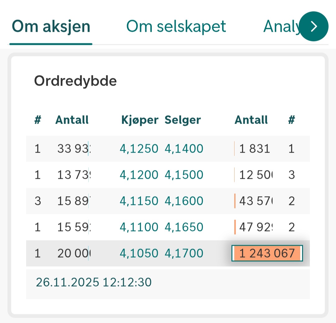 Lå 500k aksjer på kjøpersiden som en sperre på 4,3 siste timen i dag.