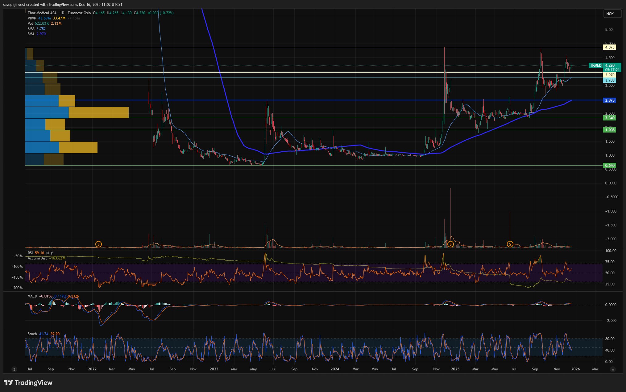 Syns 4,28-4,30 ser veldig spennende ut jeg da, vertfall når man ser hvordan aksjen har konsolidert etter oppganger tidligere.
