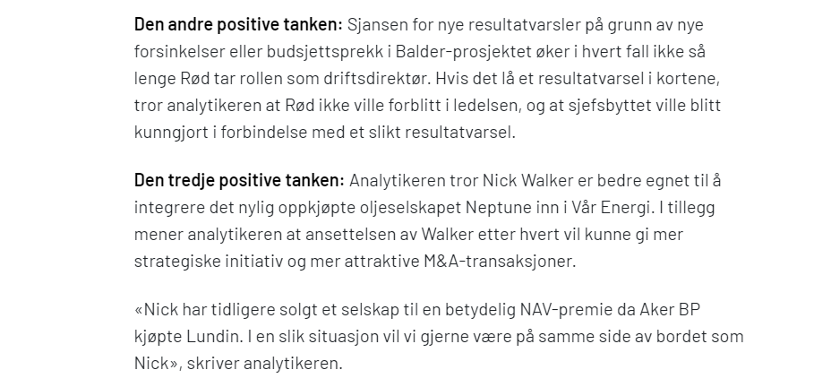 – Vår er et ungt selskap, så de skal fortsatt bygge den track-recorden. Det er klart at forsinkelsene til Balder X som de kunngjorde i fjor, ikke er en ideell start, men det vi håper å se gjennom resten av dette året, er at de oppfyller prognosene sine for året og at utviklingsplanene forblir på rett spor.