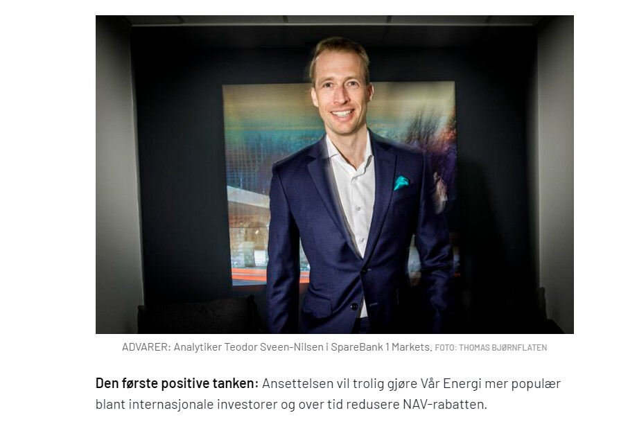- Momentet for energiaksjer er i bedring etter en svak avslutning før sommeren. Vår Energi er lavt priset og tilbyr et høyt utbytte som vi mener er opprettholdbart over tid. I tillegg får man eksponering mot 50 prosent produksjonsvekst de neste to årene. Vi ser derfor betydelig oppside, og med 30 prosent gasseksponering er også selskapet godt posisjonert for den kommende vinteren i Europa, sier Kristiansen»