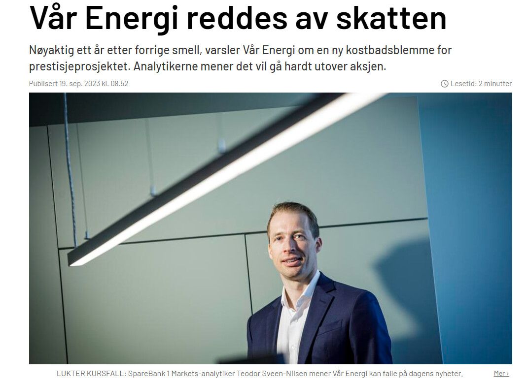 Point Resources Holding AS (the “Seller”) has retained Barclays Bank Ireland PLC, DNB Markets, a part of DNB Bank ASA, Morgan Stanley & Co. International plc and SpareBank 1 Markets AS as Joint Global Coordinators and Joint Bookrunners, ABG Sundal Collier ASA, Carnegie AS, Jefferies GmbH and Pareto Securities AS as Joint Bookrunners and Arctic Securities AS, Nordea Bank Abp, filial i Norge and Skandinaviska Enskilda Banken AB (Publ) Oslofilialen to act as Co-lead Managers (collectively referred to as the “Managers”) to explore a potential secondary placement of existing ordinary shares in Vår Energi ASA (“Vår Energi” or the “Company”) (the “Offering”). The Seller is the investment holding company consolidating the interests of various funds and co-investment vehicles managed by or advised by HitecVision (the “Funds”).