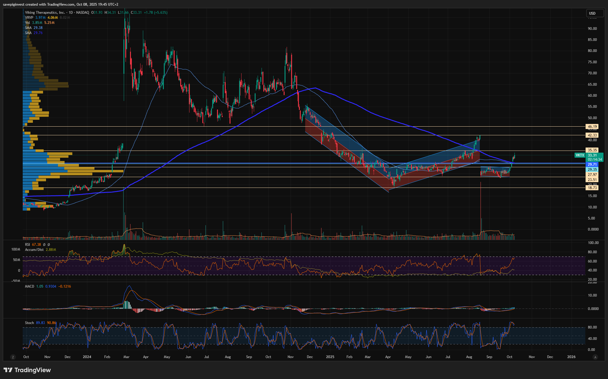 Nyheten om at Pfizer har kjøpt Metsera gir et tydelig signal om verdien i vekttap og GLP1 sektoren og det er naturlig at markedet nå spekulerer i at Viking kan bli neste oppkjøpskandidat. Dette forklarer dagens kursoppgang på omtrent 5 %. Slike spekulasjoner fungerer som en kortsiktig katalysator, men det er viktig å huske at det ikke er noen garanti for at et oppkjøp vil skje.