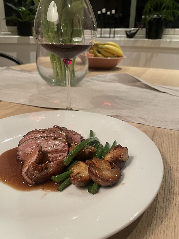 Hadde en fyldig Châteauneuf du Pape til som funket fint, men litt for høy alkoholprosent syns jeg.