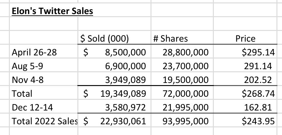 Da har han nok betalt ned Twitter, ja. Det må jo bli en voldsom skatteregning av det? Blir kanskje mer salg til neste år da.