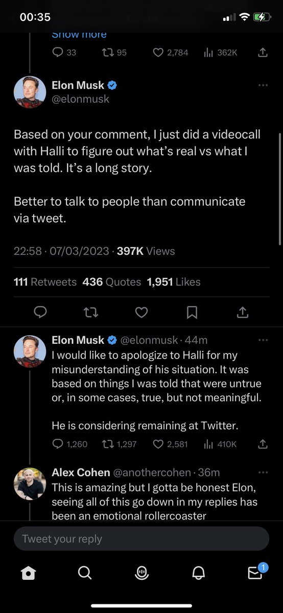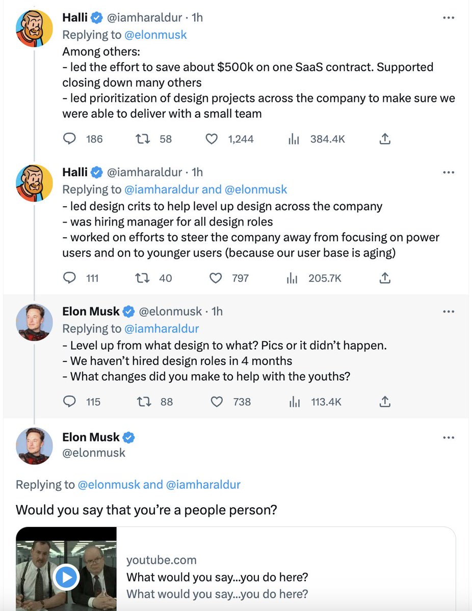 I forhold til Twitter nå er det største spørsmålet om inntektene er opprettholdt i tilfredsstillende grad. Om ikke kan Elon kutte så mye kost han vil, men det er forholdet til inntektene som er det sentrale. Går kost og omsetning ned blir bare Twitter et mindre selskap med samme underskudd ±. Men gitt at kuttet i arbeidsstokken er gjort riktig kan det kutte kost uten store fall i inntekter, da vil nok dette sees på som gode valg i ettertid. Profitabilitet for Twitter i seg selv ser dog langt unna ut, men selskapet har enorme verdier i andre ting som personlig informasjon, adferdsstatistikk, trendstatistikk og mye annet som bare er en lovendring unna å kunne omsettes bredt, og i noen tilfeller kan omsettes bedre enn nå. De verdiene kommer nok til å omsettes på et tidspunkt, om det så skulle skje av andre via dataangrep eller sosial hacking. De potensielle verdiene er for store til at jeg tror de ikke vil bli brukt/misbrukt en eller annen gang. Kanskje det er greit at Elon med sin relativt sjeldne erfaring med og forståelse for cyber security er på topp.