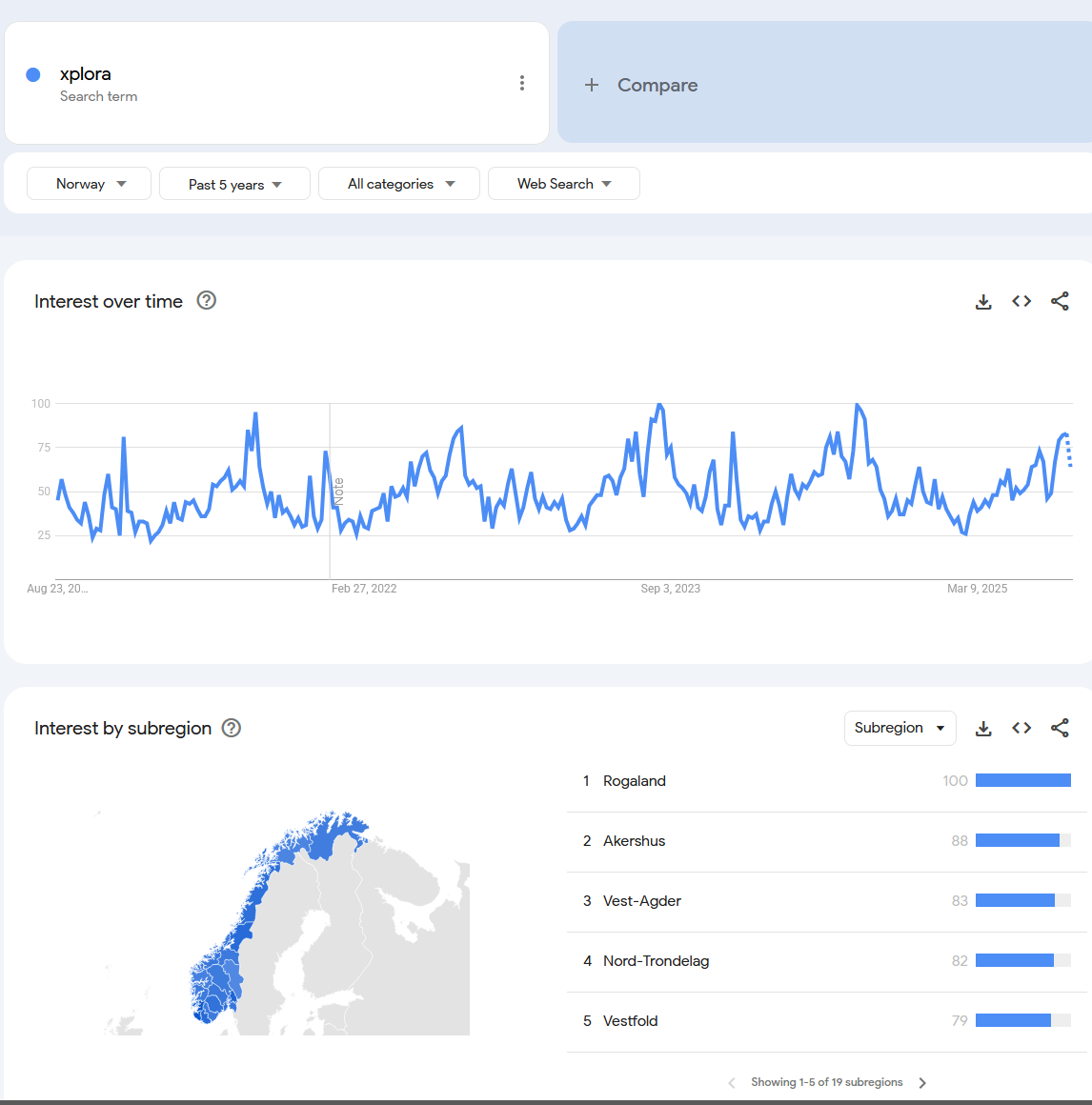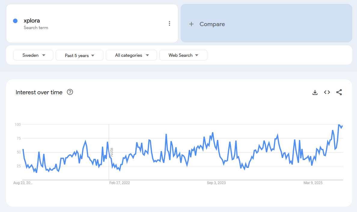 Tykland ATH på trend-kurven, største markedetspotensialet i Europa, så forventer at det kommer til å påvirke subscribertallene markant i Aug. toppen på 83 poeng i 2024 var i september. Kan gjerne forvente at kruven fortsetter inn i sep.