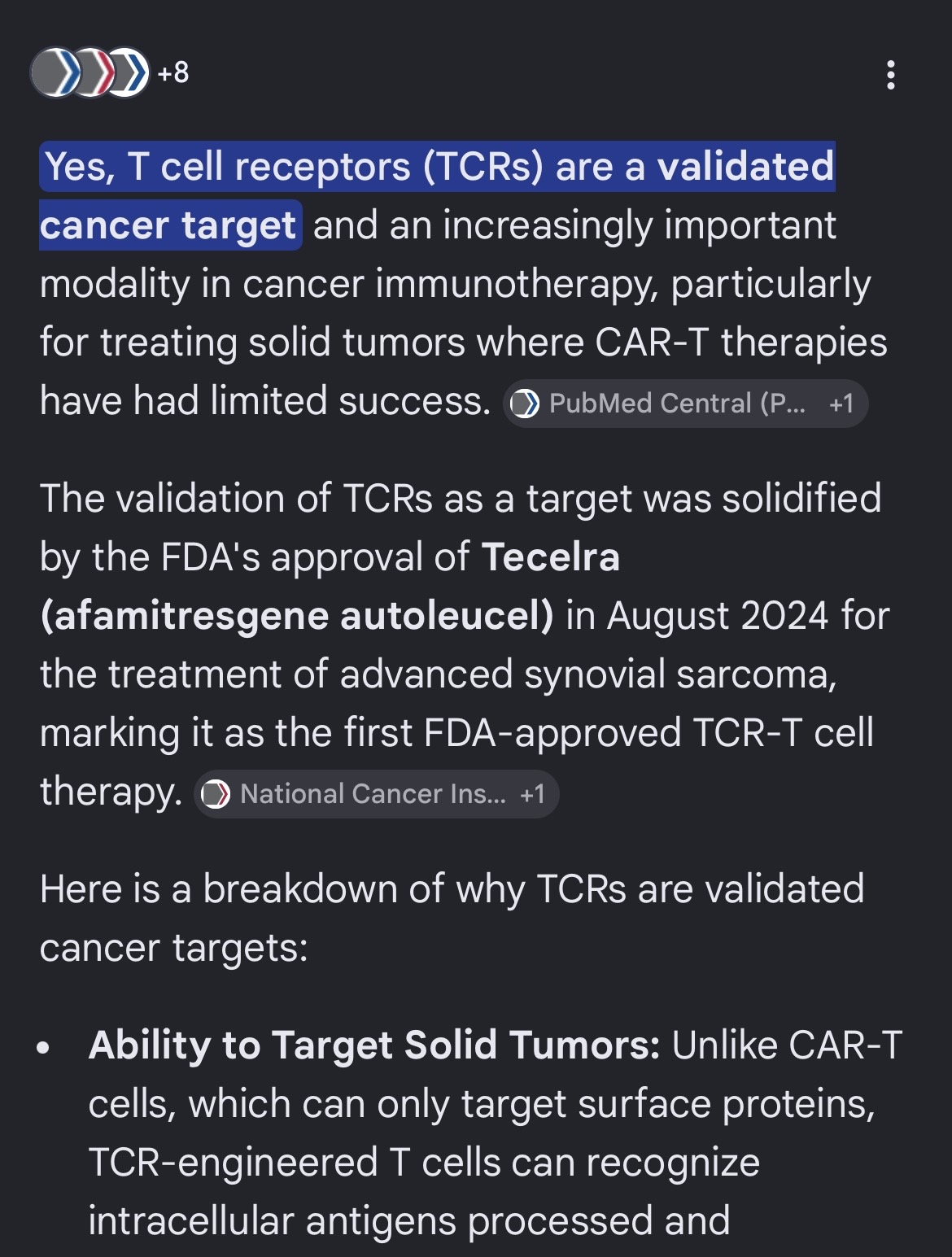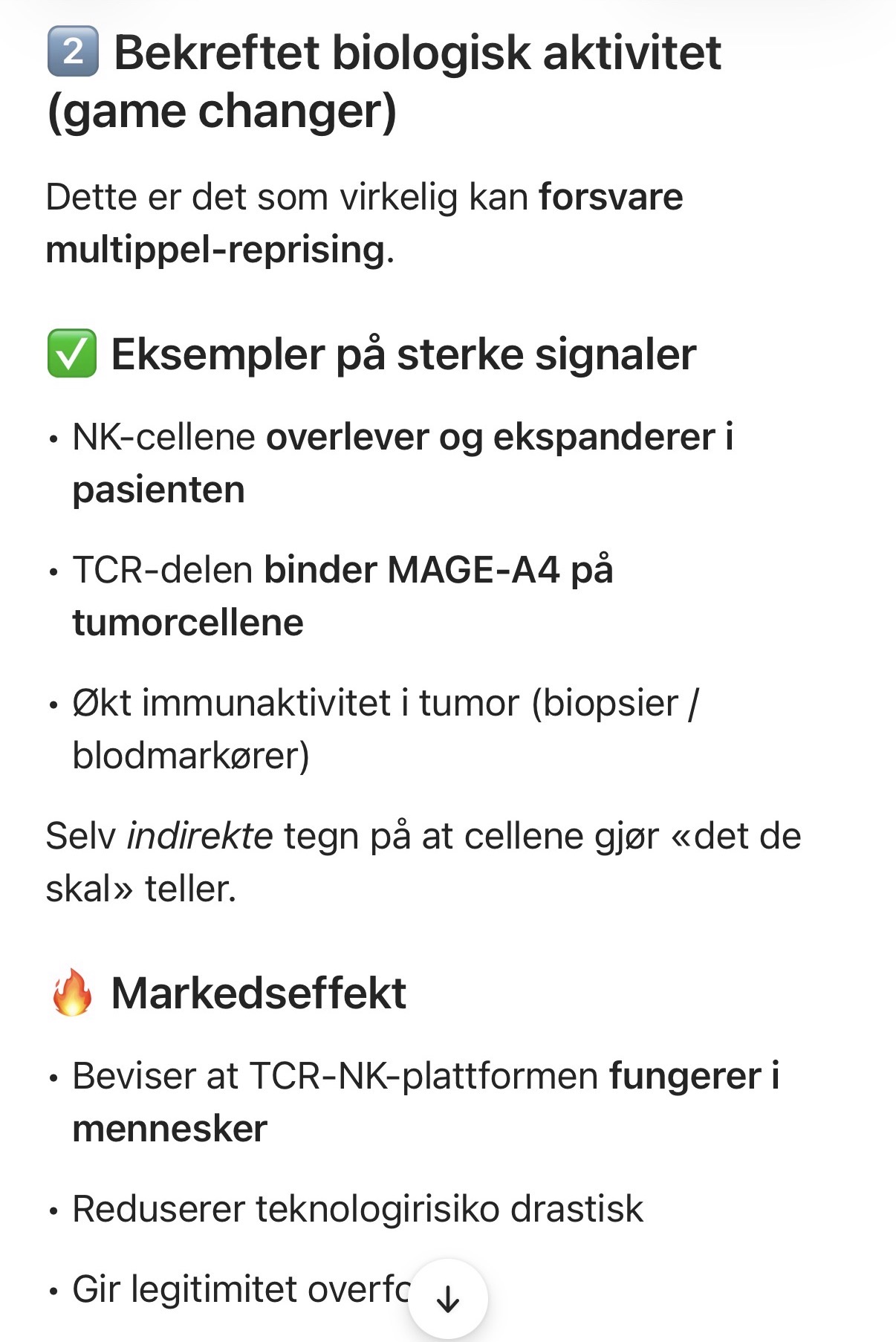 Men det som gjør at jeg velger å ta et lodd er denne unike IP-beskyttelsen som gjør at de eier hele TCR-NK feltet, og at MOA er bekreftet både for TCR som target og NK som potensiell kur mot kreft.