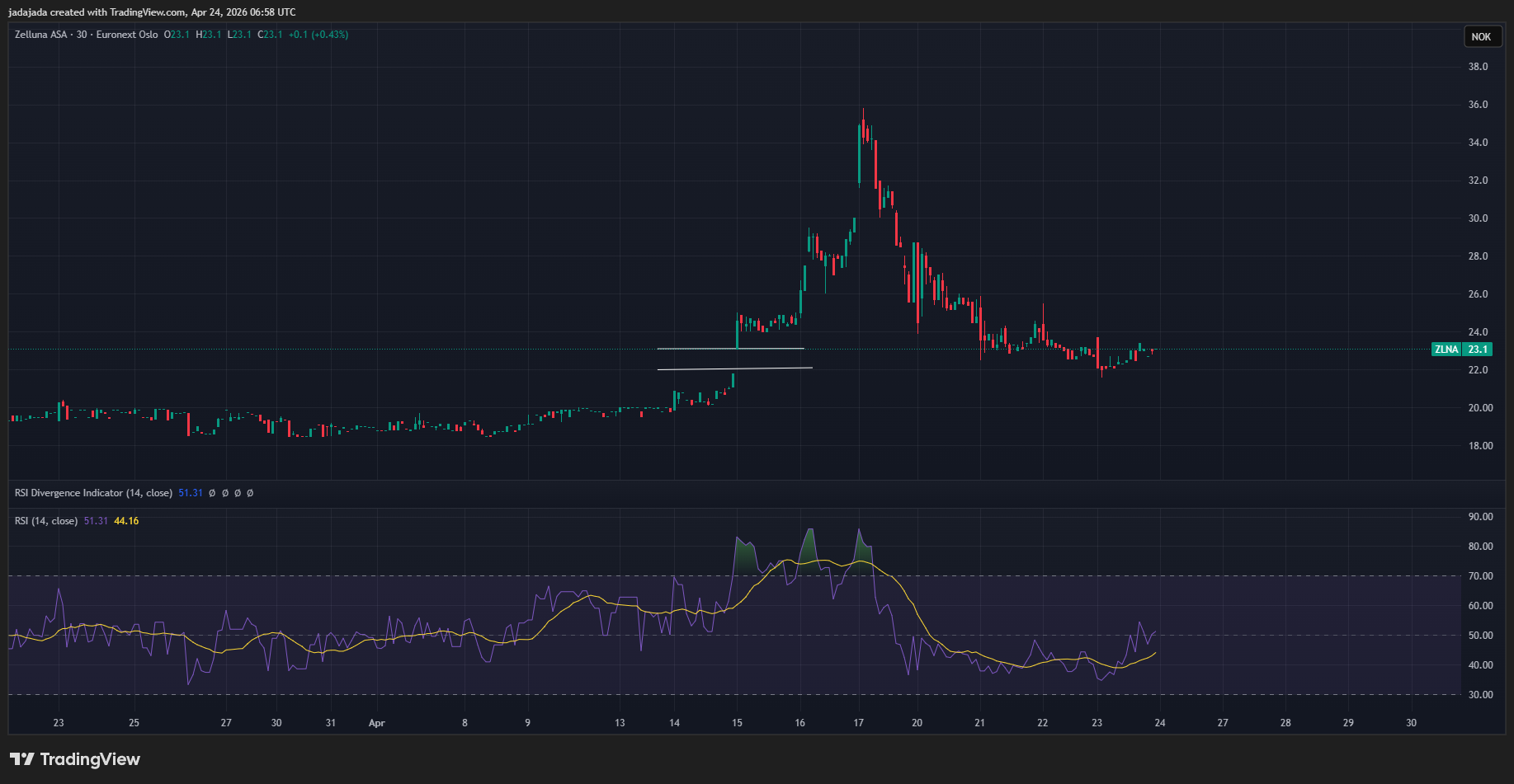 Har vi skrapt bunnen i denne korreksjonen? Gap er tetta, RSI vender opp igjen fra oversolgte nivåer. Bør vanligvis gi reaksjon opp på kort sikt. Så er det jo mye usikkerhet med så liten omsetning, lett å manipulere…